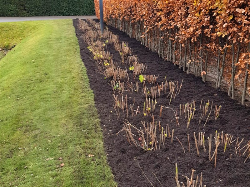 De herfst is in volle gang en de temperaturen dalen. Tijd om uw planten en bomen wat extra aandacht te geven door plantenborders aan te vullen met bosstrooisel. Het stimuleert nuttig bodemleven, bevat voeding, isoleert de bodem tegen de kou en het ziet er ook nog eens netjes uit!